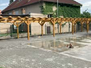 Tráva se zelená, nové veřejné osvětlení svítí a před dokončením je pergola, která celý prostor celkově dotvoří.