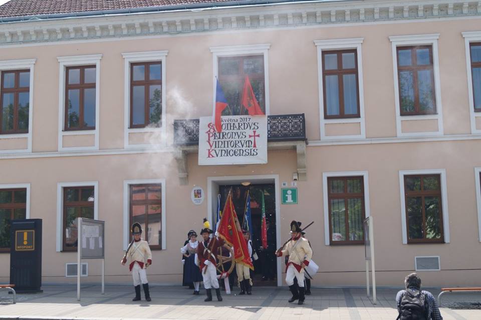 K vidění byli i vojáci v dobových uniformách, Střelci svatého Gotharda. K dobrému vínu patří i dobrá muzika, tu zajišťovali Mužácký sbor z Pohořelic a cimbálová muzika.